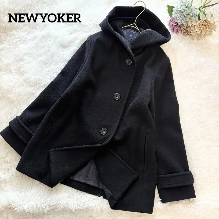 [NEWYOKER] 후데트 울 하프 코트 최근 모델 현행 택 네이비 컬러