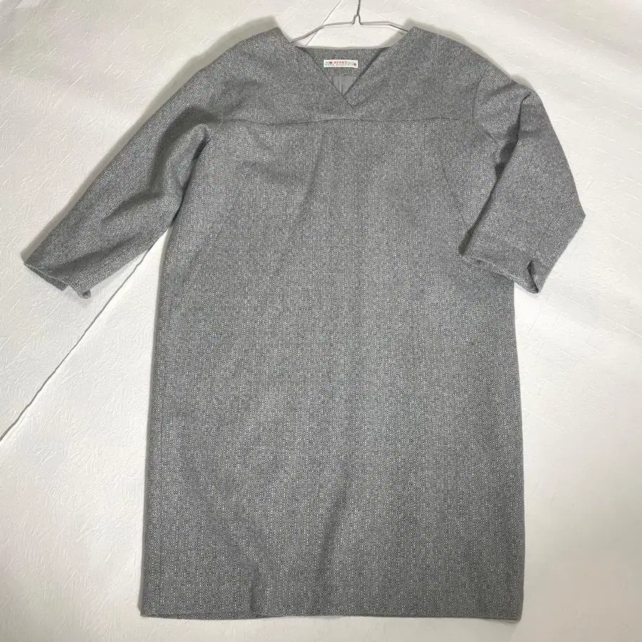빔스 하트 울 혼방 V넥 트위드 원피스 그레이