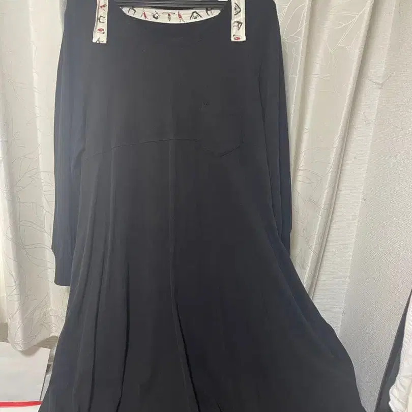 아즈노아즈 블랙 롱 원피스 가슴 포켓 부착