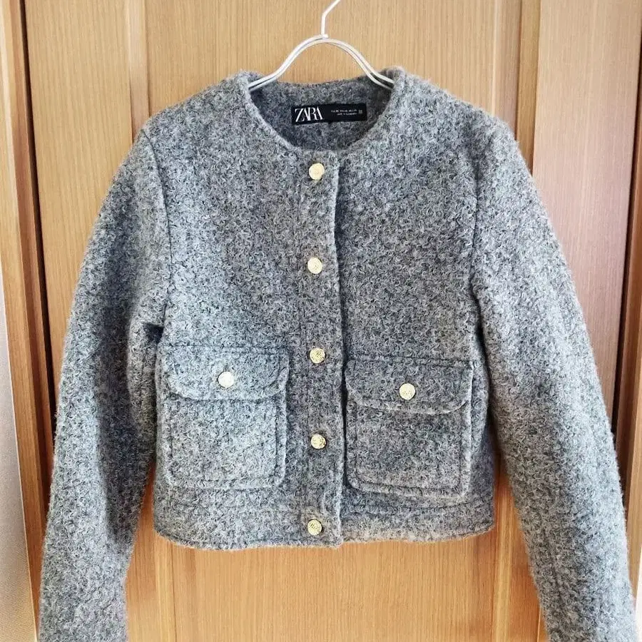 [ ZARA ] 골드 버튼 부클레 자켓/그레이 XS