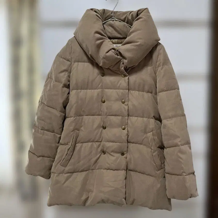 레이빔즈 베이지 다운 자켓 후드 부착 다운 코트