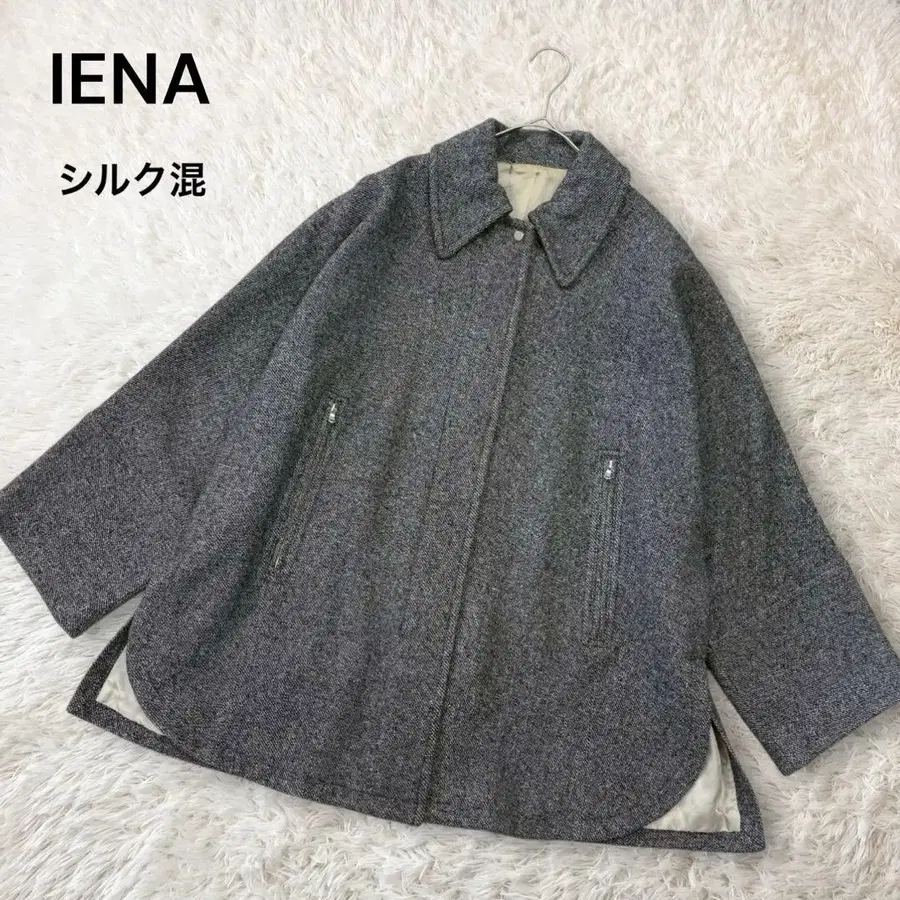 이에나 울 실크 숏 폼 코트 헤링본 집업 그레이