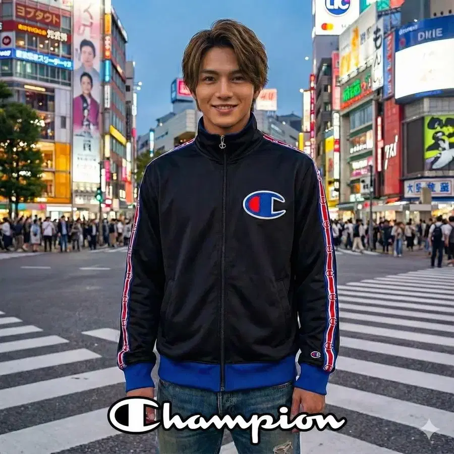 [ 레어 ] Champion 나일론 자켓 블랙/블루