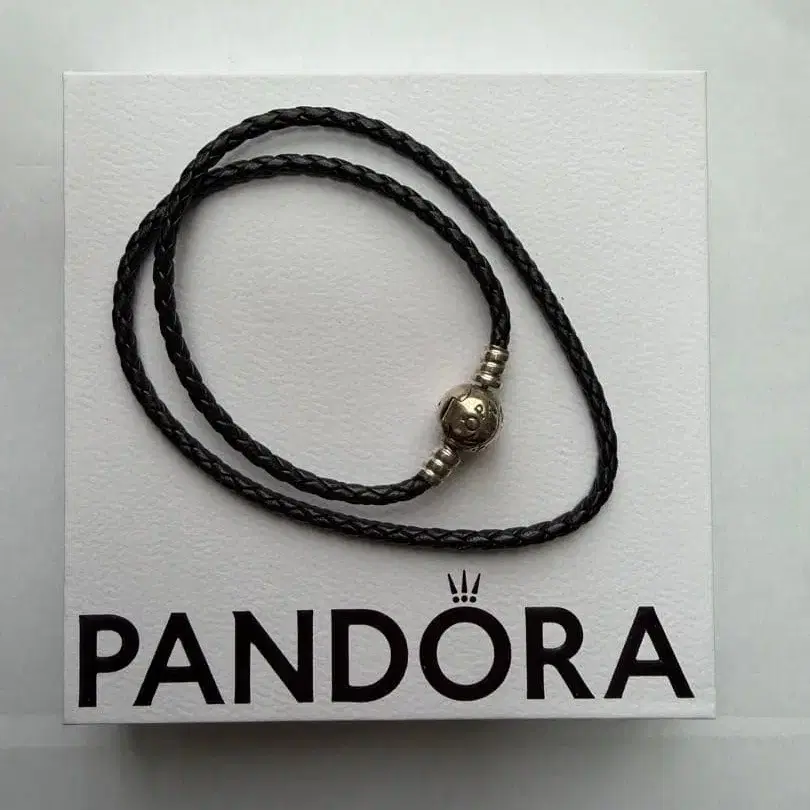 PANDORA 더블 블랙 레더 브레이슬릿 38