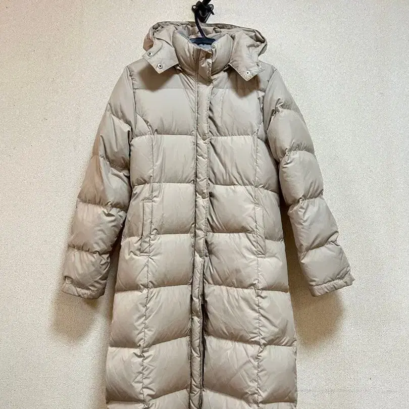 울트라 웜 롱 다운 자켓 베이지 후드 부착 벤치 코트