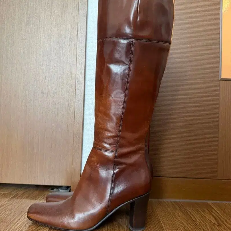 [ 최종 가격 ] 브라운 가죽 롱 부츠 약 7.5cm 힐 24cm