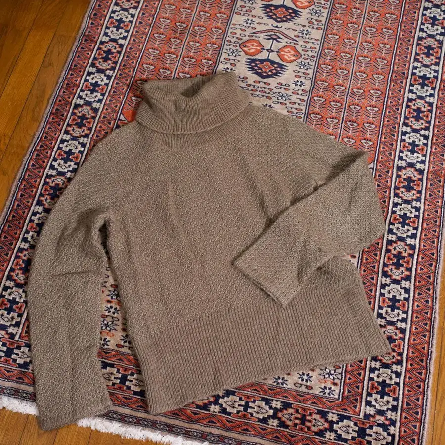 알파카 65% 혼방 베이지 터틀넥 니트 스웨터 M 사이즈 상당
