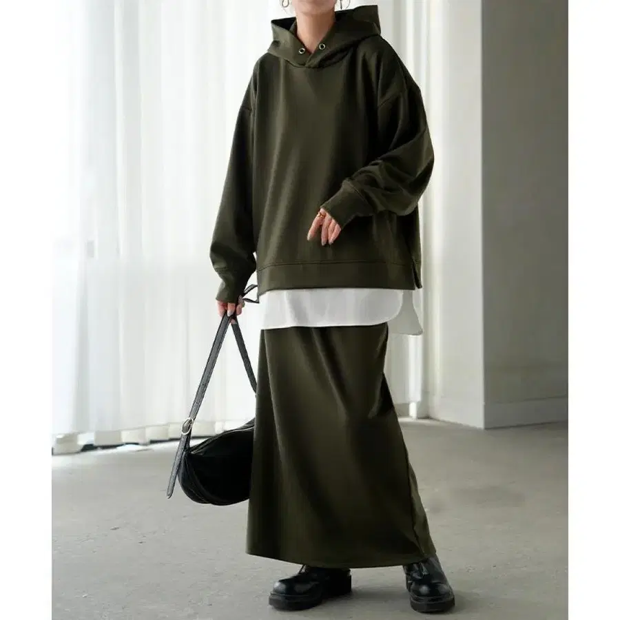 [블랙] 후드 부착 후드티와 스커트 셋업