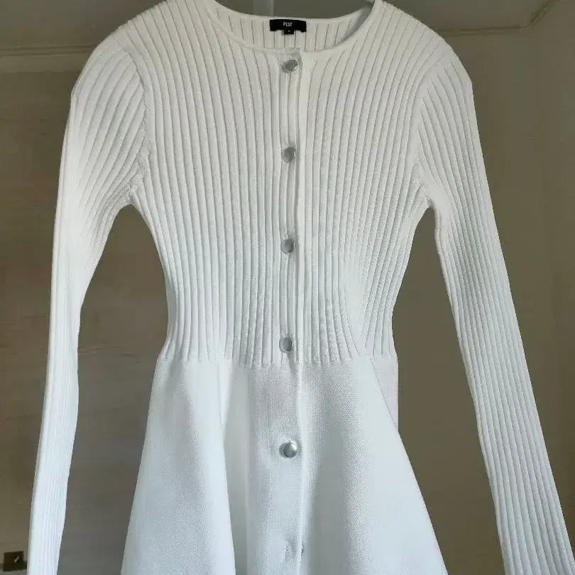 PLST 홀가먼트 페플럼 가디건 화이트