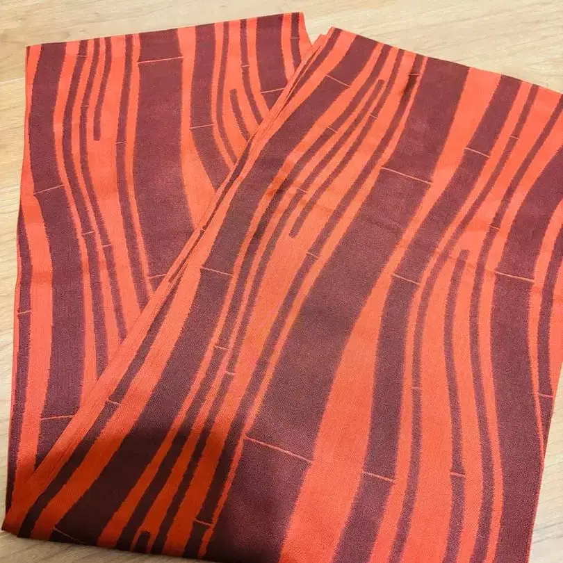 오렌지와 브라운의 나뭇결 무늬 후쿠로 오비