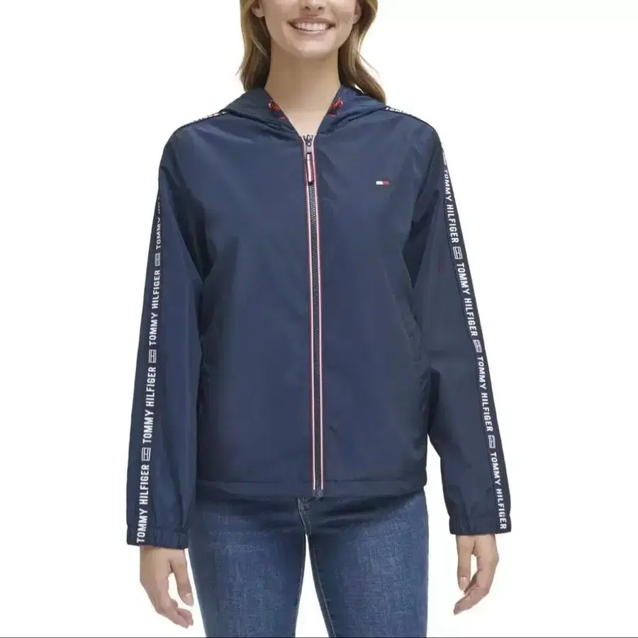타미힐피거 여성용 로고 테이프 윈드브레이커 자켓