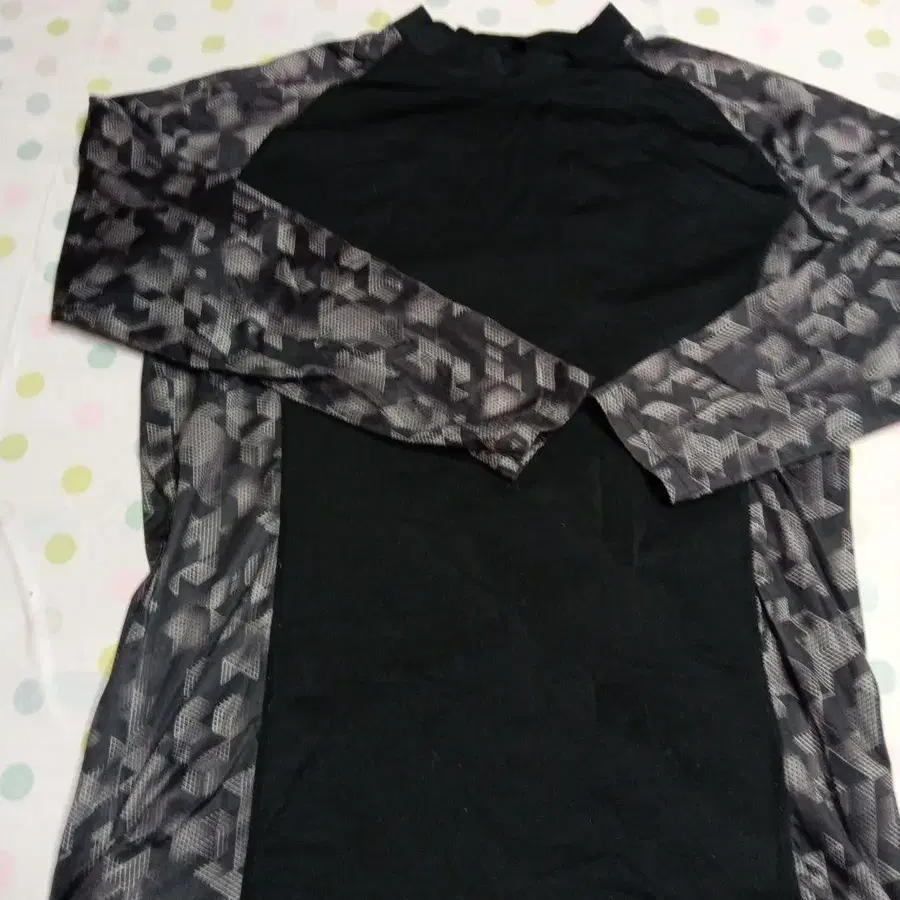남성용 L 블랙 메쉬 긴팔 티셔츠
