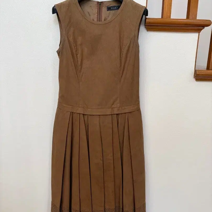 FOXY 브라운 슬리브리스 무릎 기장 원피스