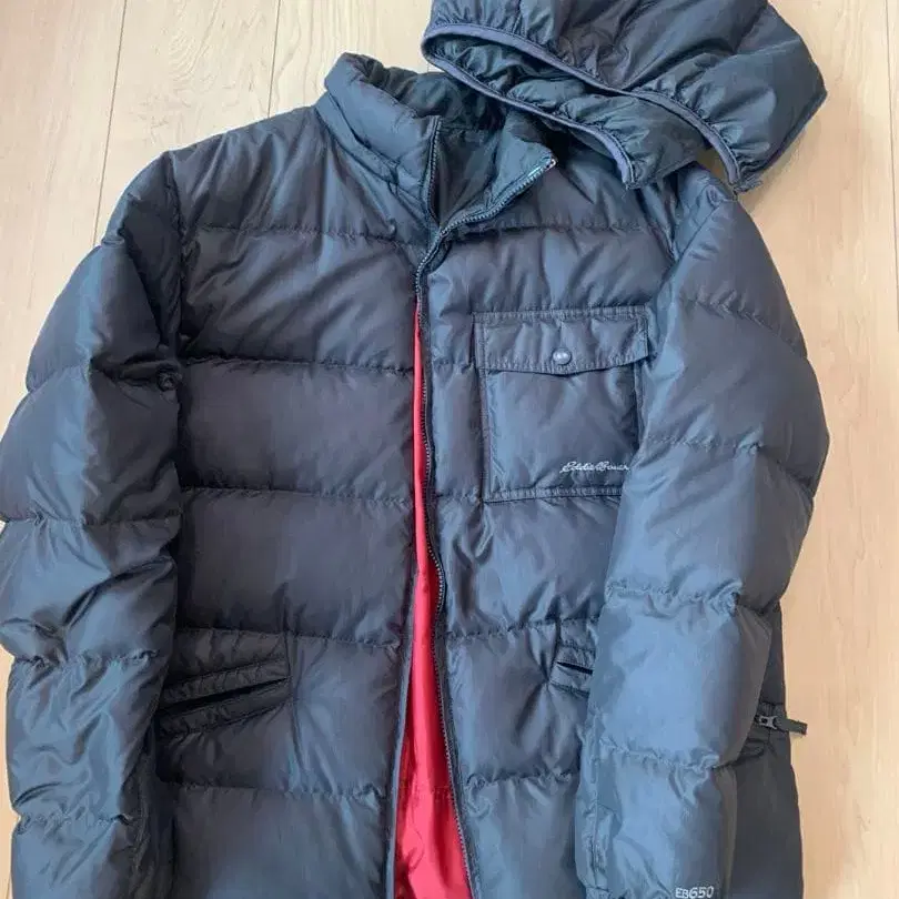 • 에디바우어 빨간색 다운 자켓 후드 부착