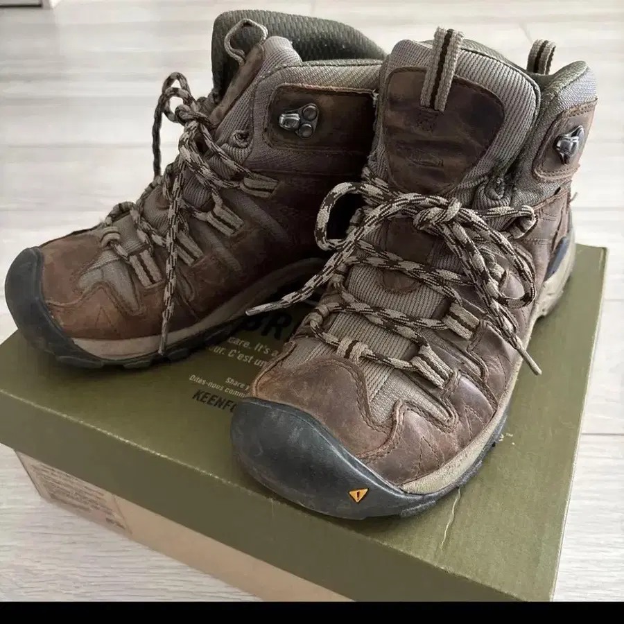 후지산 등산을 위해 구매했으나, 무사히 종료되어 판매합니다. 후지산 등반 이후 낮은 산을 몇 번 걸었을 때도 발볼이 넓어 편안했습니다. 평소 23.5~24 사이즈를 신습니다. 하산 후 클리너와 오일로 관리했습니다. 깔창을 깔고 사용했기 때문에 안에 씰 자국이 있지만, 데미지는 보이지 않습니다. 산행이나 아웃도어 활동에 딱 좋습니다. 상자는 부피가 커서 동봉하지 않을 예정이지만, 원하시는 분은 200엔 추가 시 가능하니 댓글 부탁드립니다. KEEN의 Mid컷 트레킹 슈즈입니다. 등산이나 하이킹에 최적인 미드컷 디자인으로, 안정적인 보행을 서포트합니다. 어퍼는 내구성이 있는 가죽과 통기성이 좋은 메쉬 소재로 구성되어 있어 장시간 사용해도 쾌적합니다. 아웃솔은 뛰어난 그립력을 발휘하며, 다양한 지형에 대응합니다. [ 브랜드 ] KEEN [ 색상 ] 브라운 계열 사용에 따른 미세한 마찰과 밑창 마모 등 전반적인 사용감이 있습니다. 자세한 내용은 이미지를 확인해주세요. 기능적으로는 문제가 없으며, 계속 사용하실 수 있습니다. 잘 부탁드립니다.