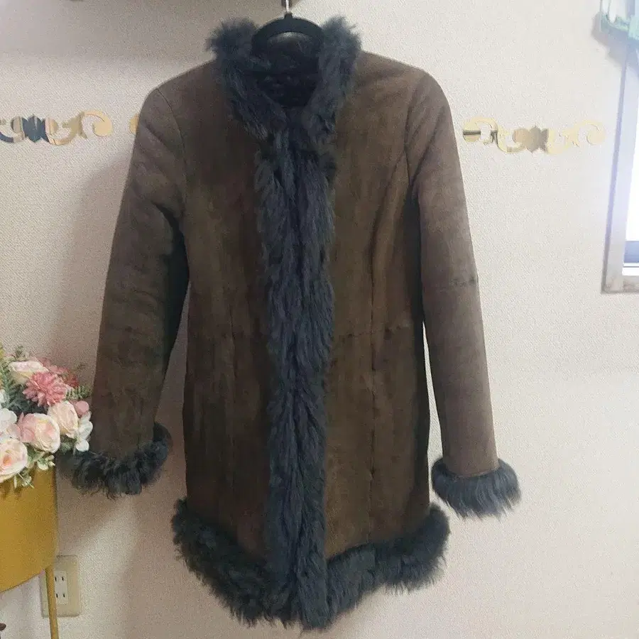 양가죽 무스탕 롱 코트 브라운 퍼 포함