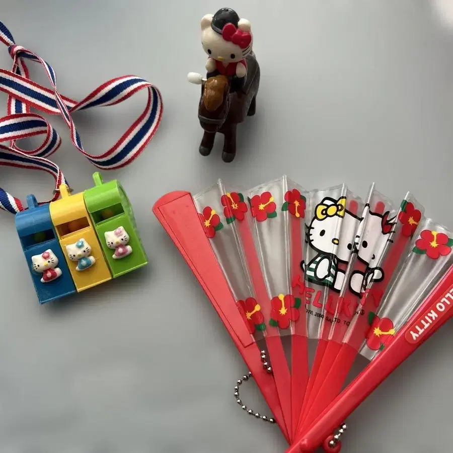 헬로키티 미니어처 피규어 세트 태엽 말 부채 호루라기
