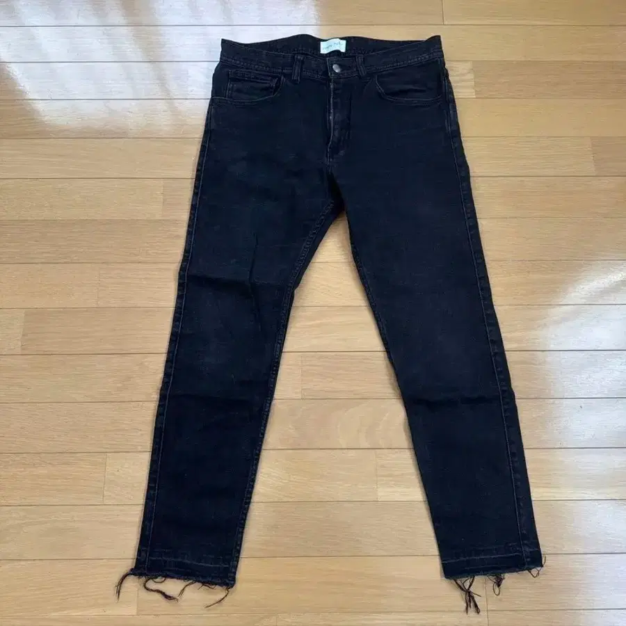 블랙 스키니 데님 프린지 밑단 블랙 데님 스키니