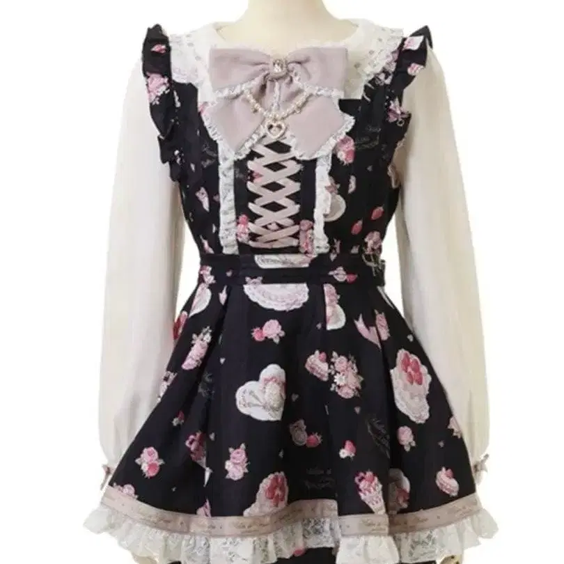LIZ LISA Salon de Fraise 패턴 셋업 블랙
