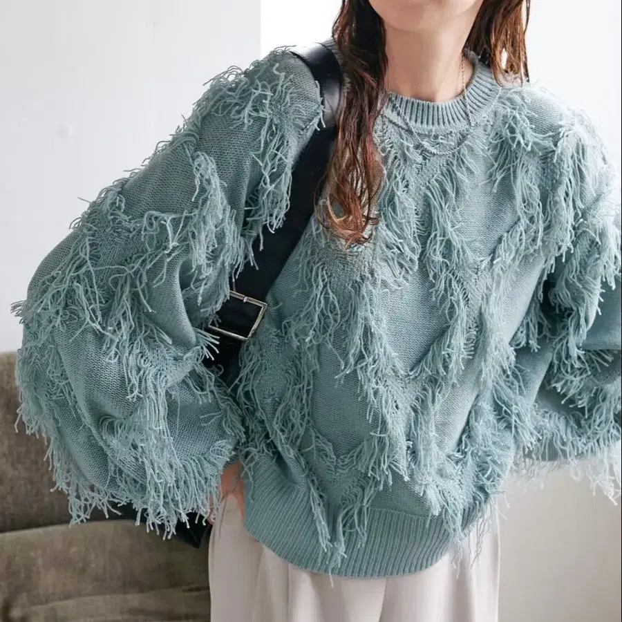 새상품 디스코트 프린지 사용 풀오버 색스 블루