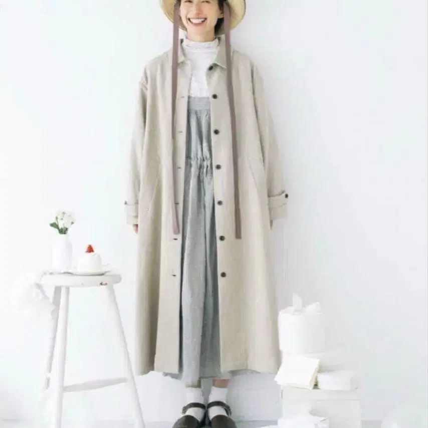 kazumi x 사만사 모스모스 콜라보 스텐카라 코트 도트 베이지