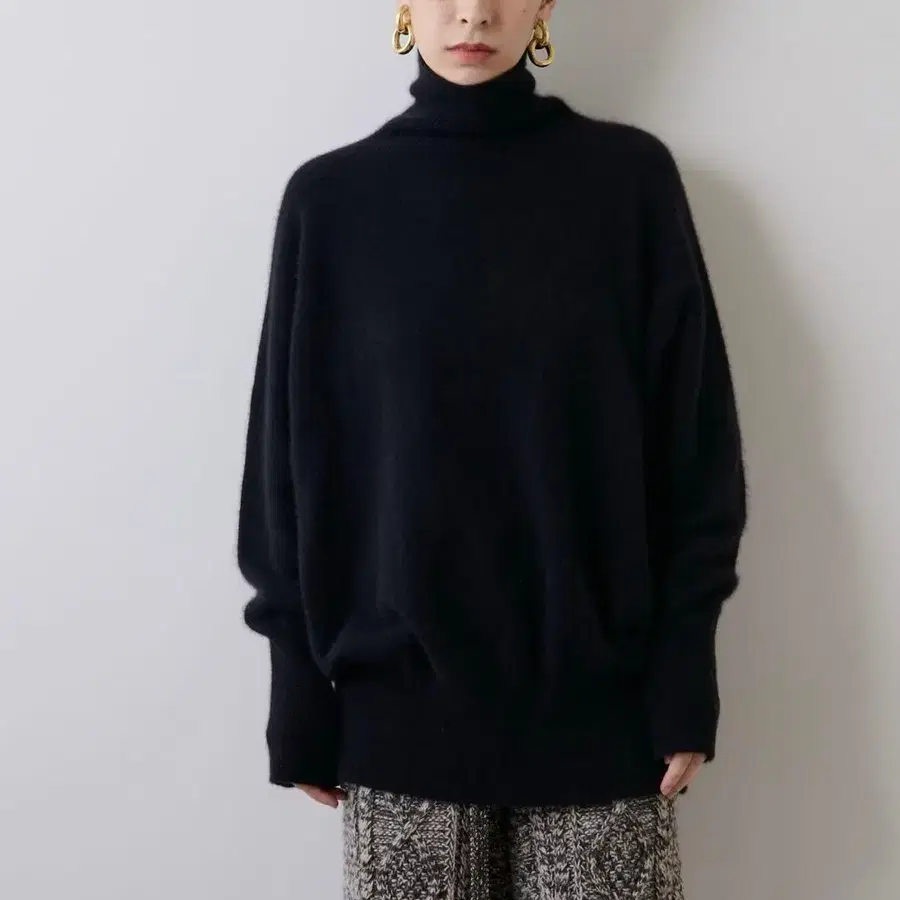 자동 번역되었어요. 원문보기여유로운 오버 실루엣으로 성숙한 분위기를 연출하는 터틀넥 니트