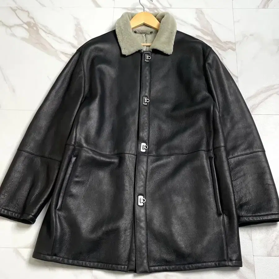 페라가모 무스탕 가죽 롱 코트 블랙 남성용 보아 아우터