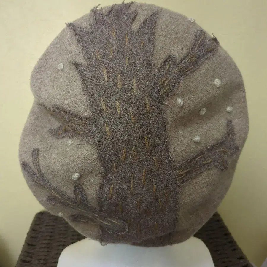 울 베레모 나무 무늬 자수