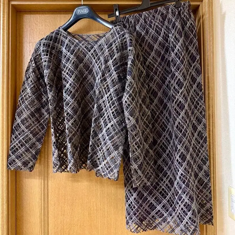 요건 레일 비침 체크 무늬 긴팔 셋업