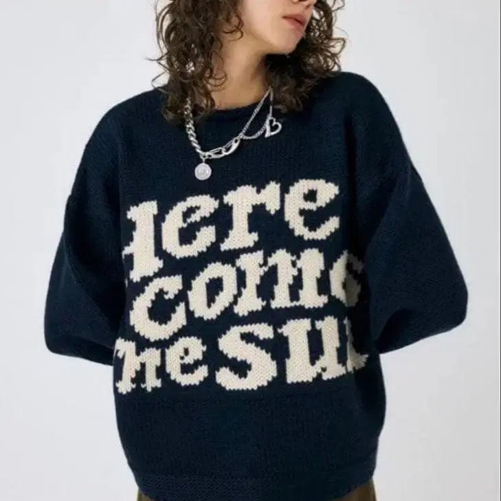 [ 새상품급 ] moussy LETTERED 스웨터 네이비