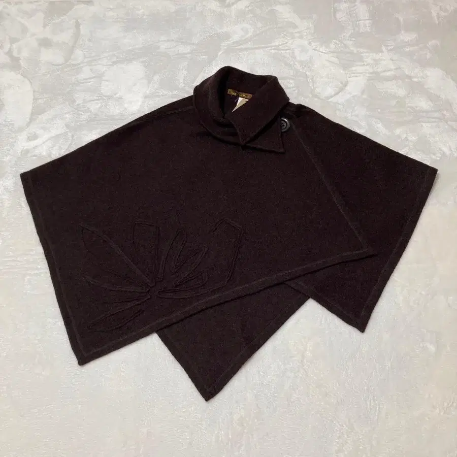 [택 포함 새상품] 압축 울 다크 브라운 판초 꽃 모티브 비대칭