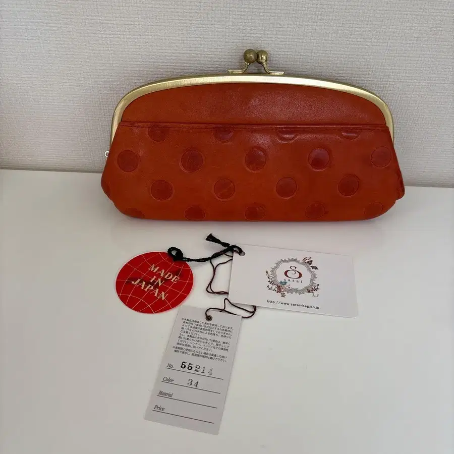사라이 도트 W 가마구치 장지갑 미사용 오렌지 일본제
