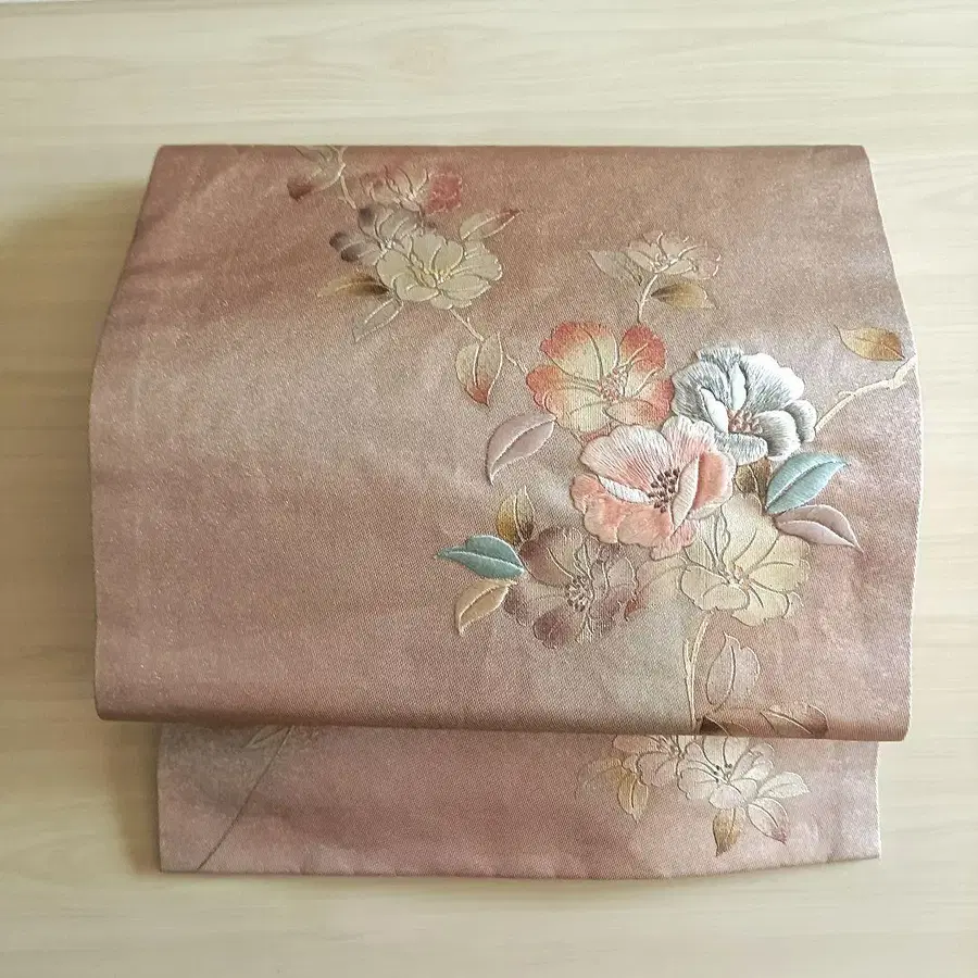 [ 나고야 오비 ] 순수 실크 자수 초화 무늬 인박