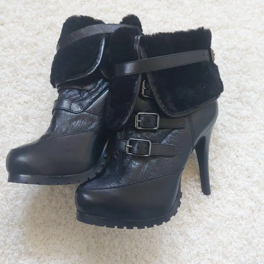 [ ASH ] 퍼 트리밍 가죽 부츠 12cm 힐 3버클