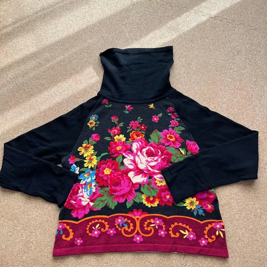 블랙과 꽃무늬 터틀넥 니트