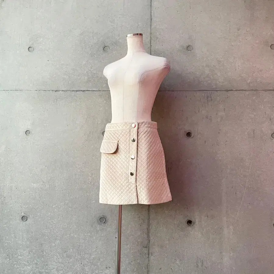 택 포함 새상품 벨로아 퀼팅 골드 버튼 베이지 미니 스커트 M