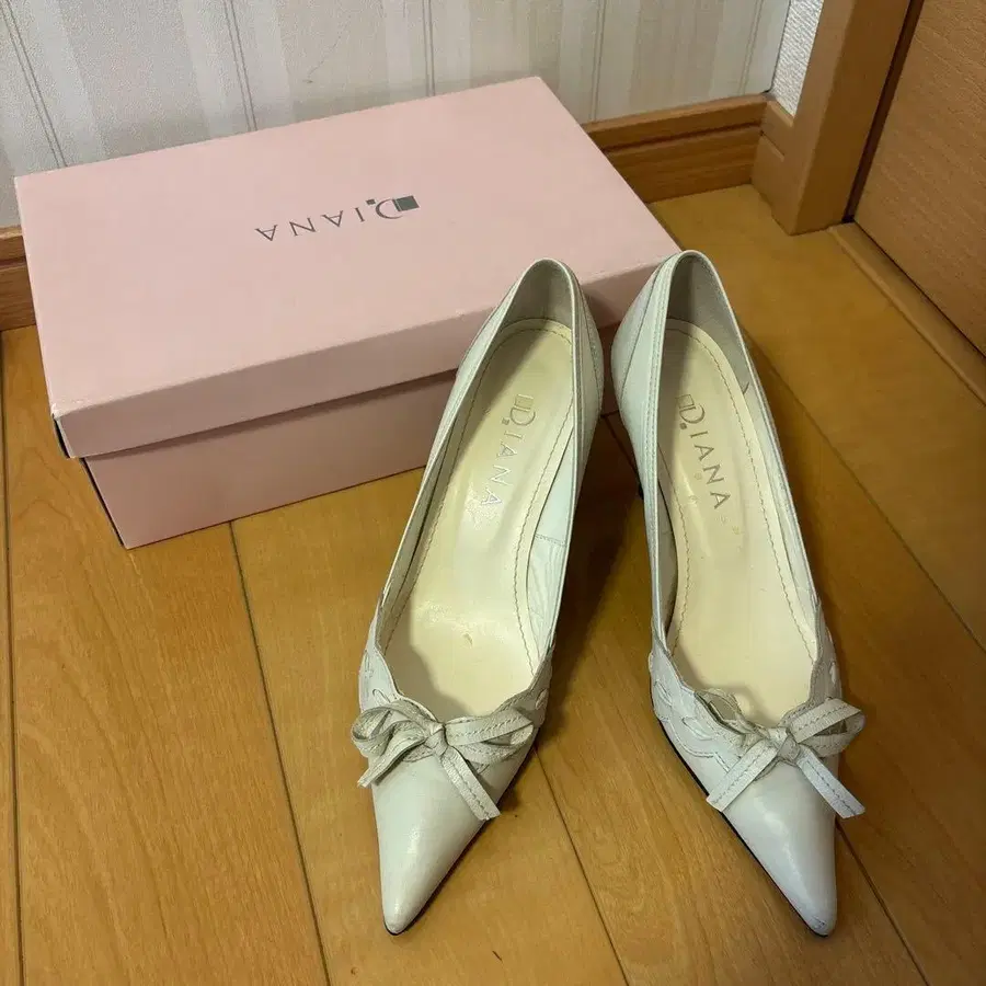 DIANA 리본 포함 화이트 펌프스