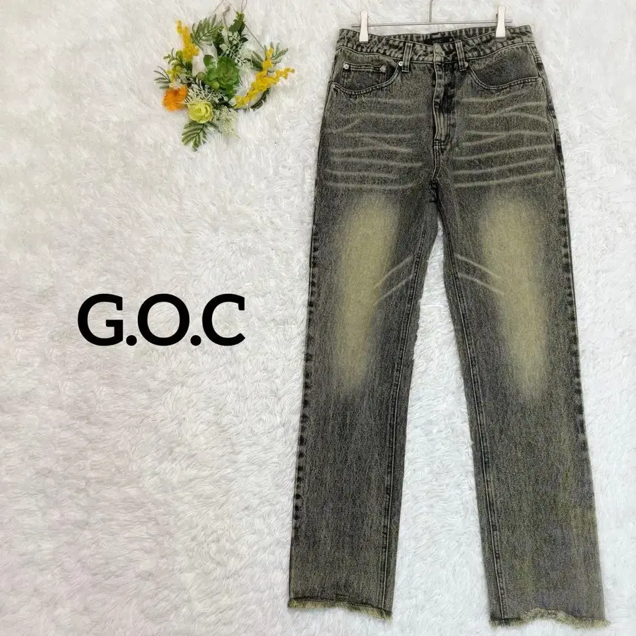 [GOC] 남성용 스트레이트 데님 청바지 스트레치 없음 블랙 베이스