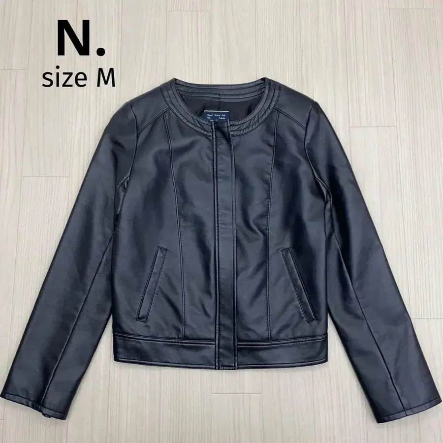 N. N 도트 램 가죽 노카라 자켓 블루종 M