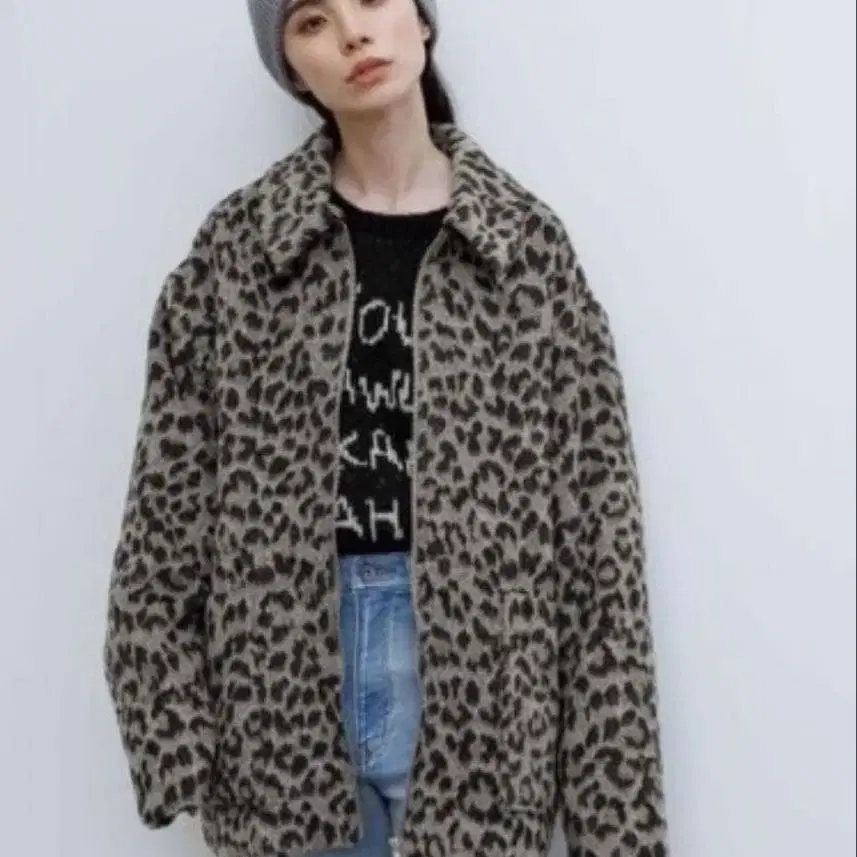 JEANASIS 샤기 ZIP 레오파드 미들 코트