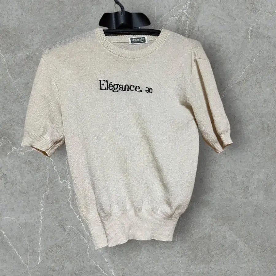 Elegance. 자수 반팔 니트 스웨터 크림색