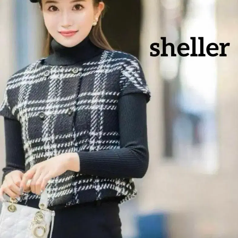 새상품급 sheller 셰리에 체크 트위드 프렌치 상의 베스트