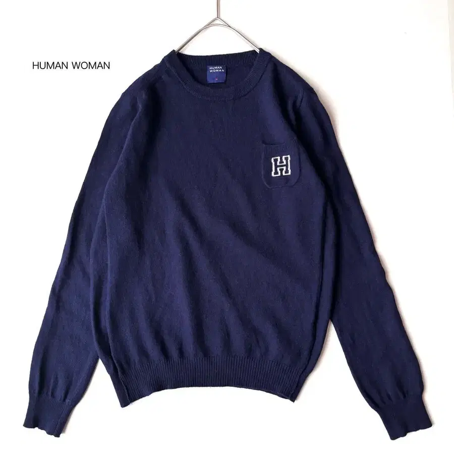 휴먼 우먼 크루넥 니트 포켓 로고