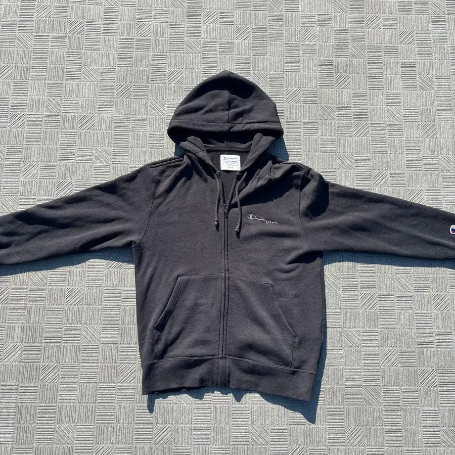 Champion 블랙 지퍼 후드티 타이트 A라인 로고 자수 크롭