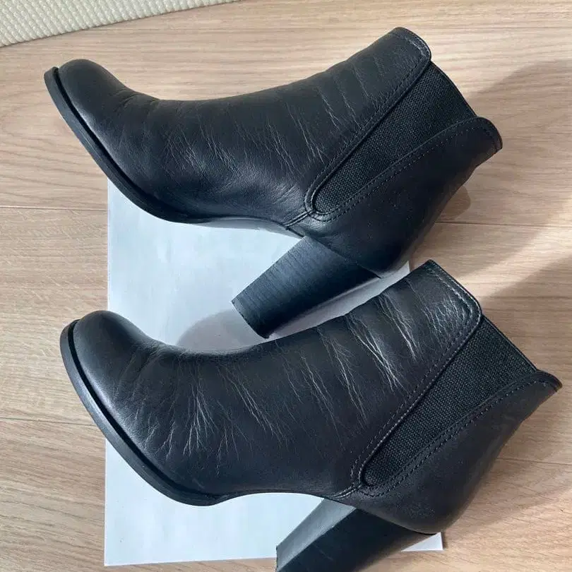 블랙 가죽 사이드 고어 부츠 츠모리치사토 워크 24.0cm