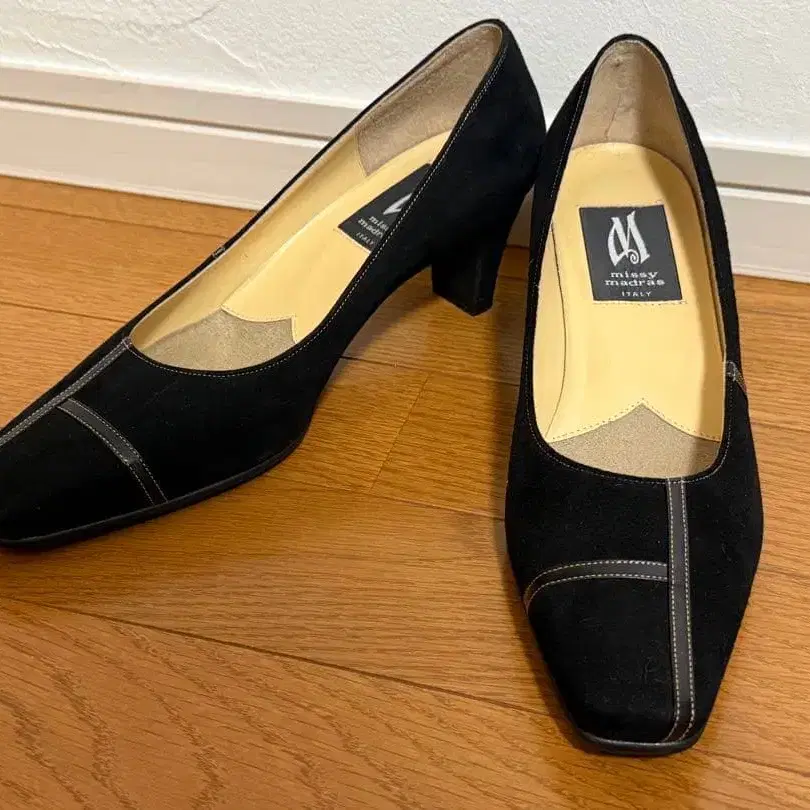 마드라스 블랙 스웨이드 스퀘어토 펌프스