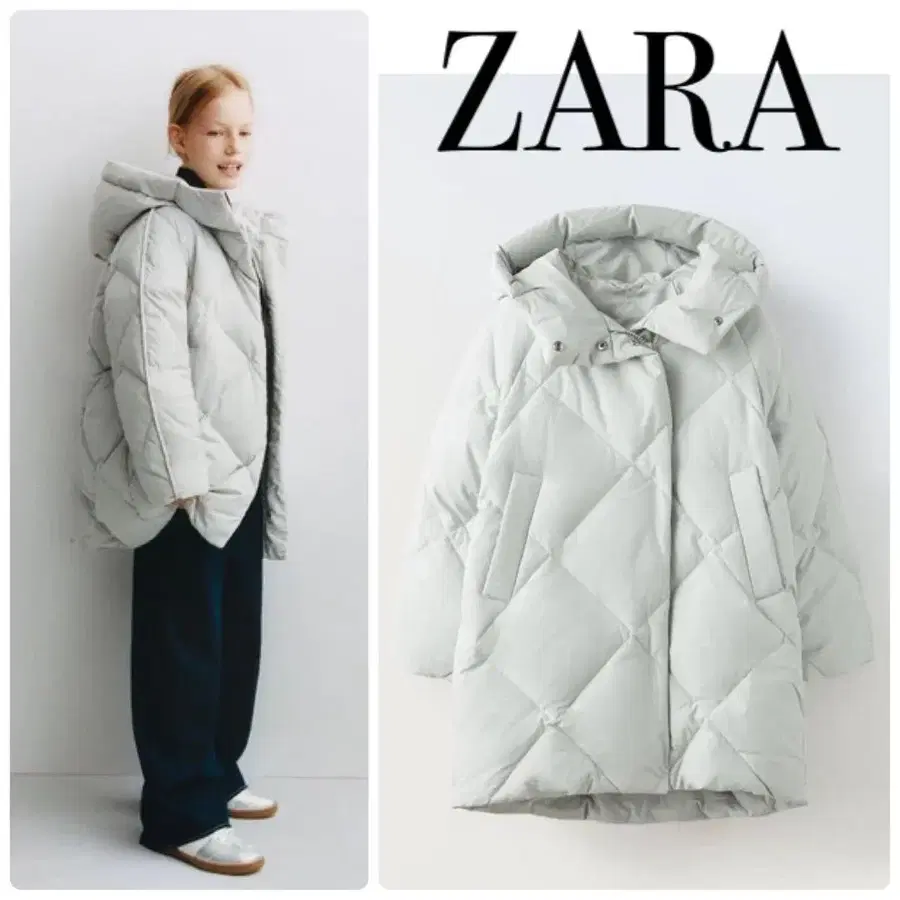 [미사용 새상품] ZARA 페더&다운 퍼프 자켓 아이스 그레이