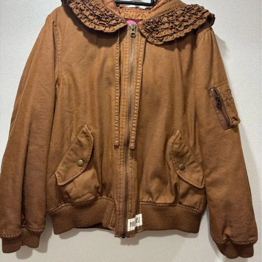 핑크하우스 피코 프릴 후드 부착 블루종 브라운