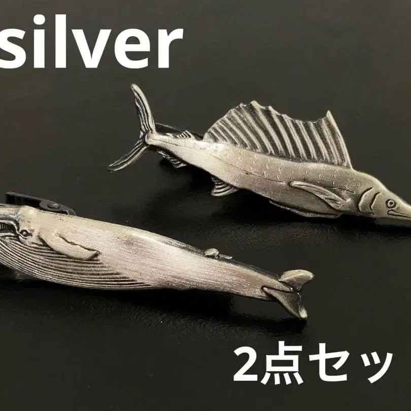 silver제 고래 황새치 모티브 넥타이핀 2세트