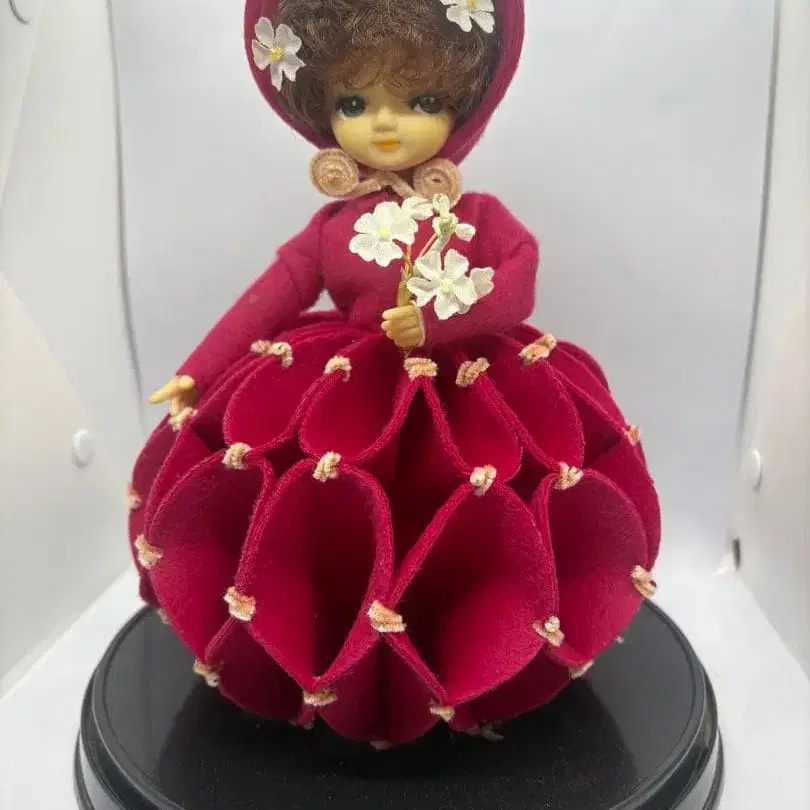 쇼와 레트로 빨간 모자 꽃무늬 인형